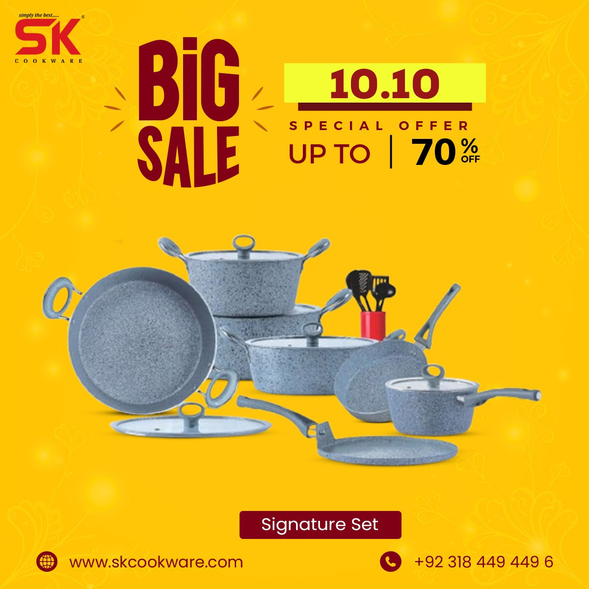 Non-Stick Marble Coated Signature Wok (Karahi) - Details SK Cookware is the No.1 Cookware and Kitchenware Brand in Pakistan. Our marble-coated non-stick woks (Karahi) are produced from premium quality aluminum...