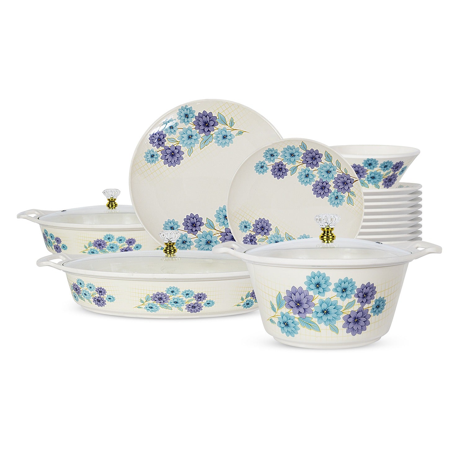 64 Pieces Melamine Double Glaze Crystal Dinnerware Set Information SK Cookware is Pakistan's best Cookware and Dinnerware brand. We bring premium quality Melamine Dinnerware Sets for you at the most...