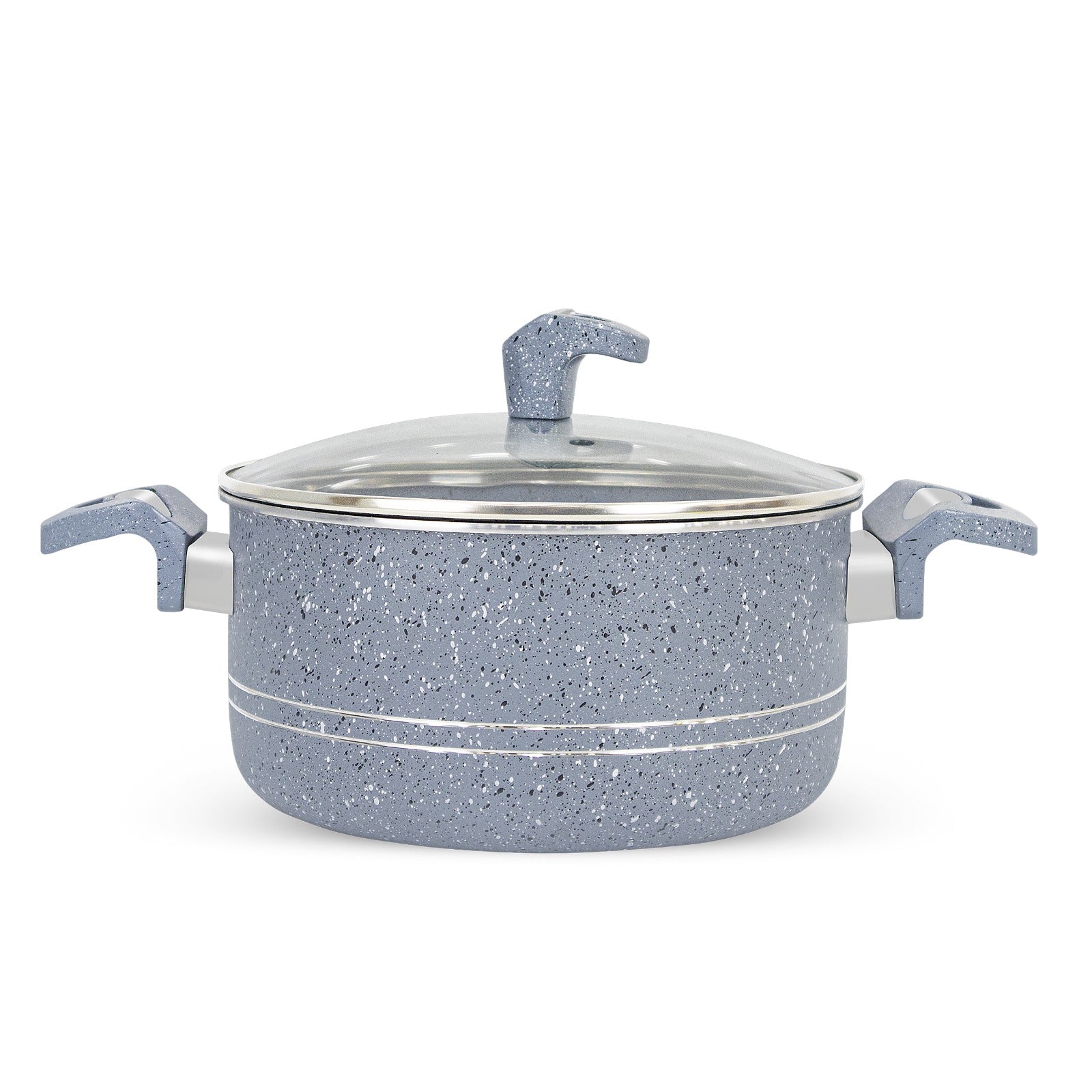 The perfect stylish body of our marble-coated pots and pans is manufactured from heavy gauge high-quality pure aluminum which ensures even heat distribution for better cooking and results in fantastic performance throughout the kitchen.