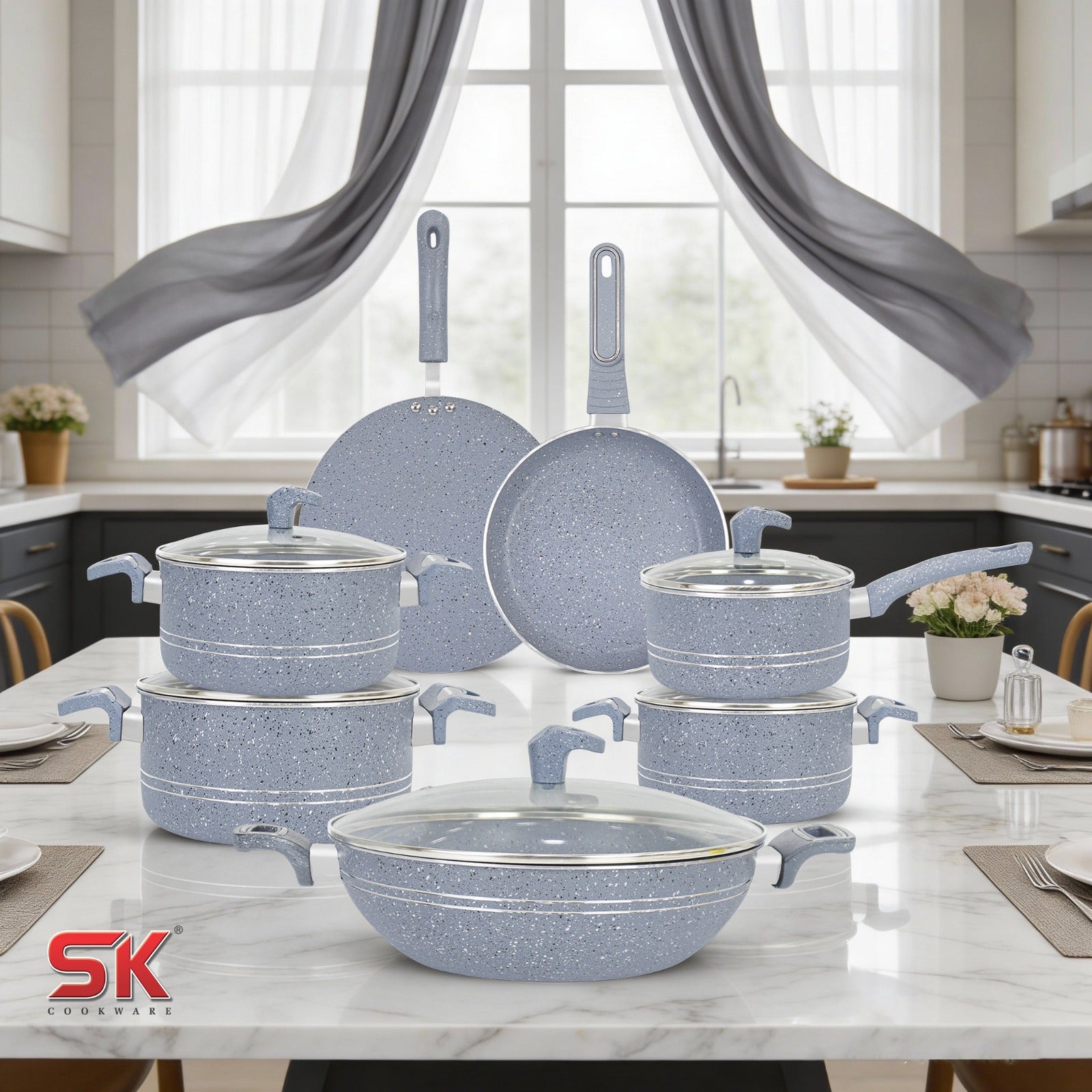 This Marble Coating Set is the ultimate solution for your kitchen needs. Because SK Cookware is a Brand of Excellence and serving its customers for the last 50 years.