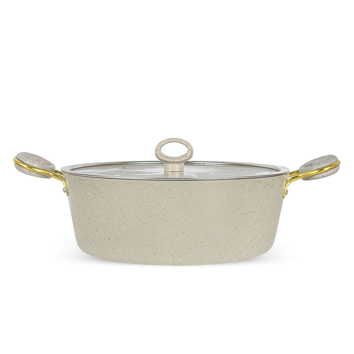 The perfect stylish body of our marble-coated pots and pans is manufactured from heavy gauge high-quality pure aluminum which ensures even heat distribution for better cooking and results in fantastic performance throughout the kitchen.