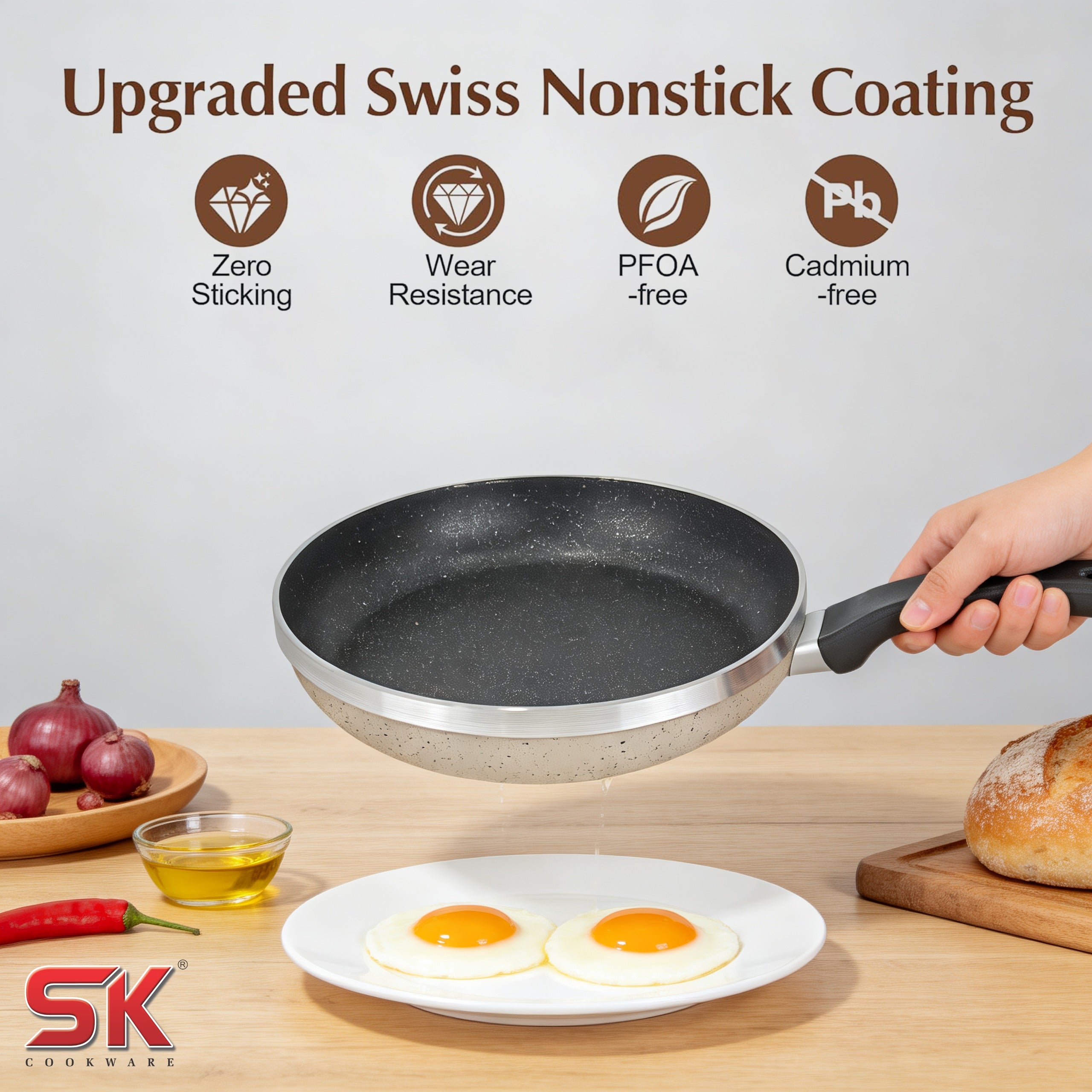 Yes, SK Cookware uses PTFE-based coatings such as Teflon™ Classic or Teflon™ Select in its non-stick products. PTFE is an FDA-approved, food-safe material that performs reliably when used correctly.